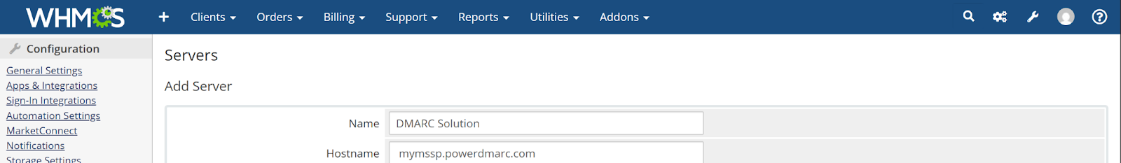 Pour commencer, avant d'ajouter le serveur, vous devez activer PowerDMARC pour WHMCS Addon