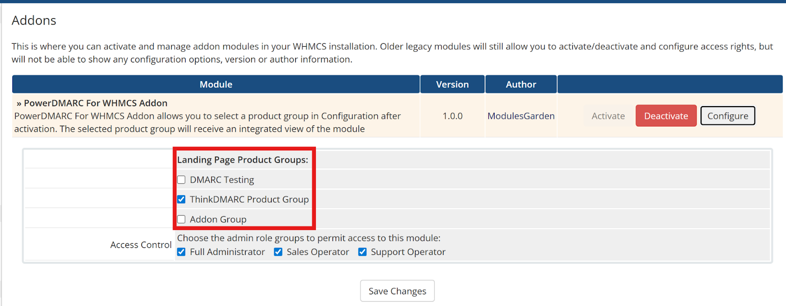 Activer l'addon "PowerDMARC For WHMCS Addon".